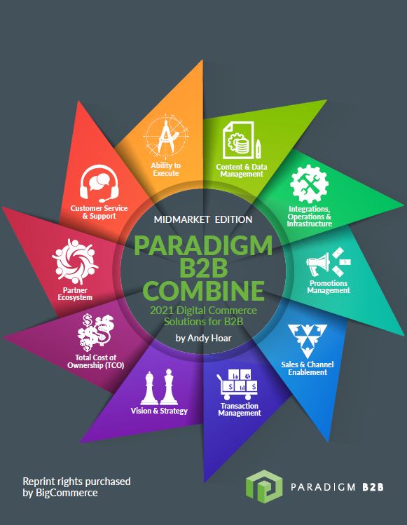 “BigCommerce is particularly well-suited for midmarket B2B companies looking for a value-priced, partner-centric, multitenant SaaS ecommerce solution that leverages an extensive open application marketplace to deliver complementary functionality.” — Andy Hoar, Chief Executive Officer, Paradigm B2B.