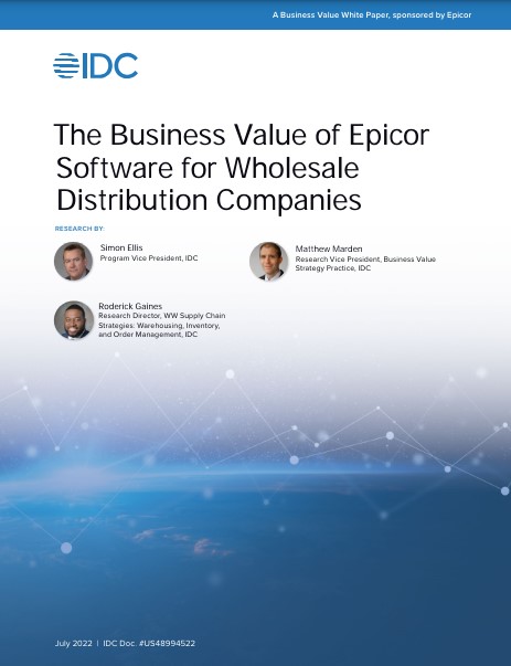 Turns out, a lot. Research firm IDC published a new study after interviewing distributors that use Epicor ERPs. They reported a 412% ROI in 3 years, 45% more orders dispatched, 35% more inventory turns, and 22% faster delivery times. Read the Study. |
