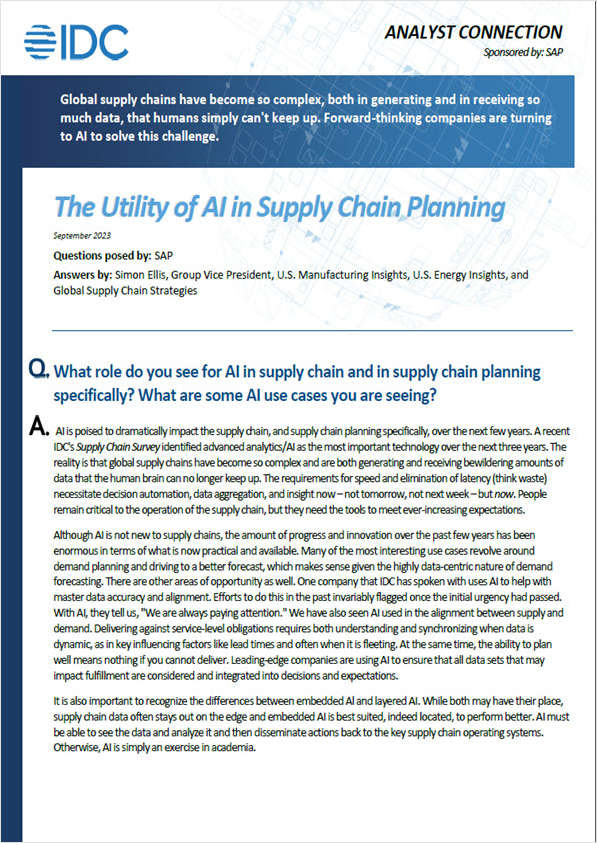 IDC: The Utility of AI in Supply Chain Planning